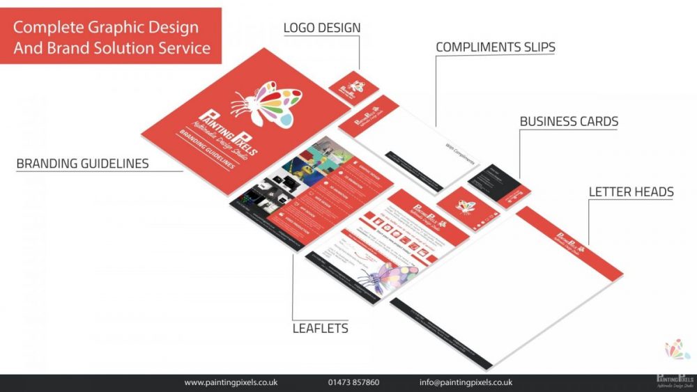 Painting Pixels can produce a full branding package that will work well with your whole company image, fonts, styles, layout, logo, and colour range – assets that work in perfect sync with your logo, website, printed leaflets, business cards and more. Check out our Graphic Design service page to see more of what we can offer.